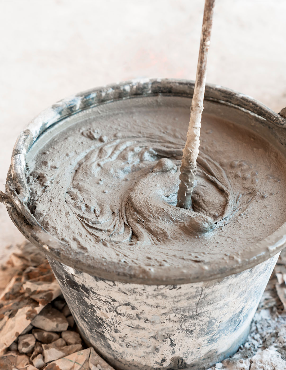 Si vous optez pour une application à la truelle, n’employez que 70% de la partie liquide, aucun treillis n’est nécessaire. Pour commencer, appliquez la première couche avec un rouleau et laisser durcir de deux à six heures. Lorsque vous surfacer les coulis, employez une brosse ou un balai à poils durs, tandis que pour les mortiers employez une truelle plate. Après la deuxième couche lisser la surface avec une éponge sèche pour obtenir une finition uniforme.